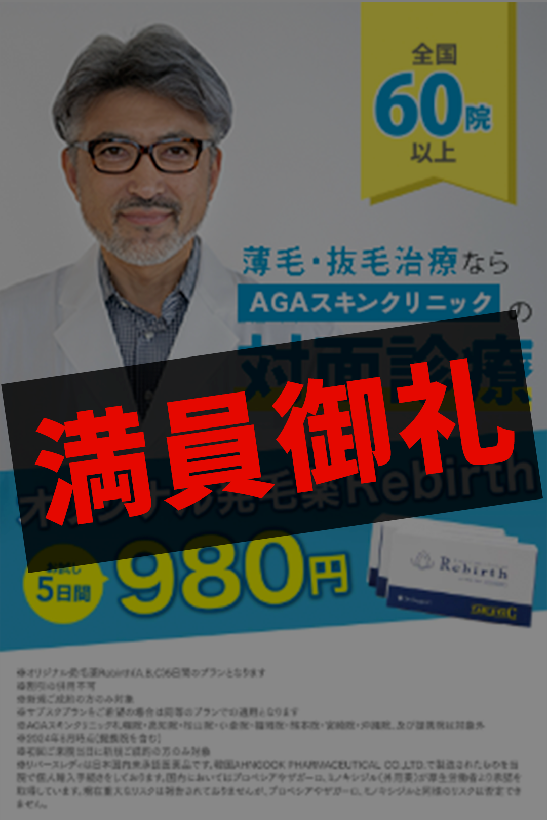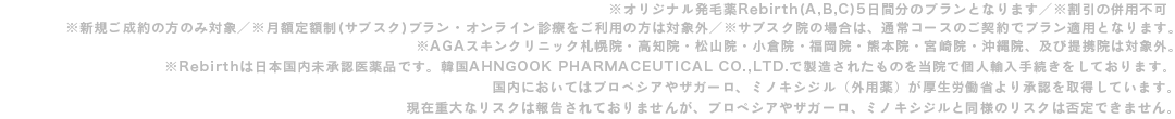 ※Rebirthは日本国内未承認医薬品です。韓国AHNGOOK PHARMACEUTICAL CO.,LTD.で製造されたものを当院で個人輸入手続きをしております。